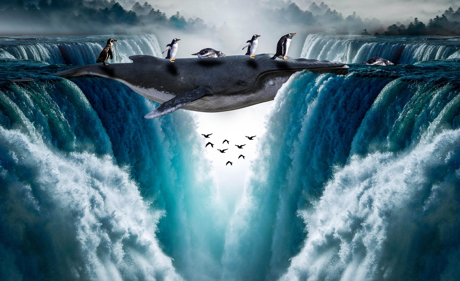 Crazy P. was with her sister Joker P. and they tried to fly but instead they ended up sliding on the ice down to the ocean.